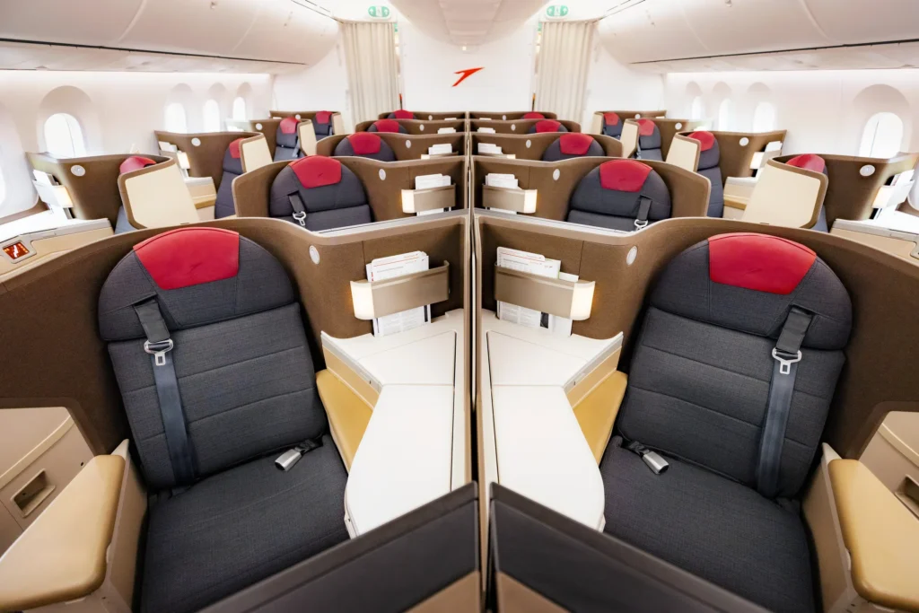 Austrian Airlines Business Class offers spacious seats with ample legroom and recline, providing passengers with a comfortable and relaxing travel experience. These seats are designed to maximize comfort and minimize fatigue, making them ideal for long-haul flights.