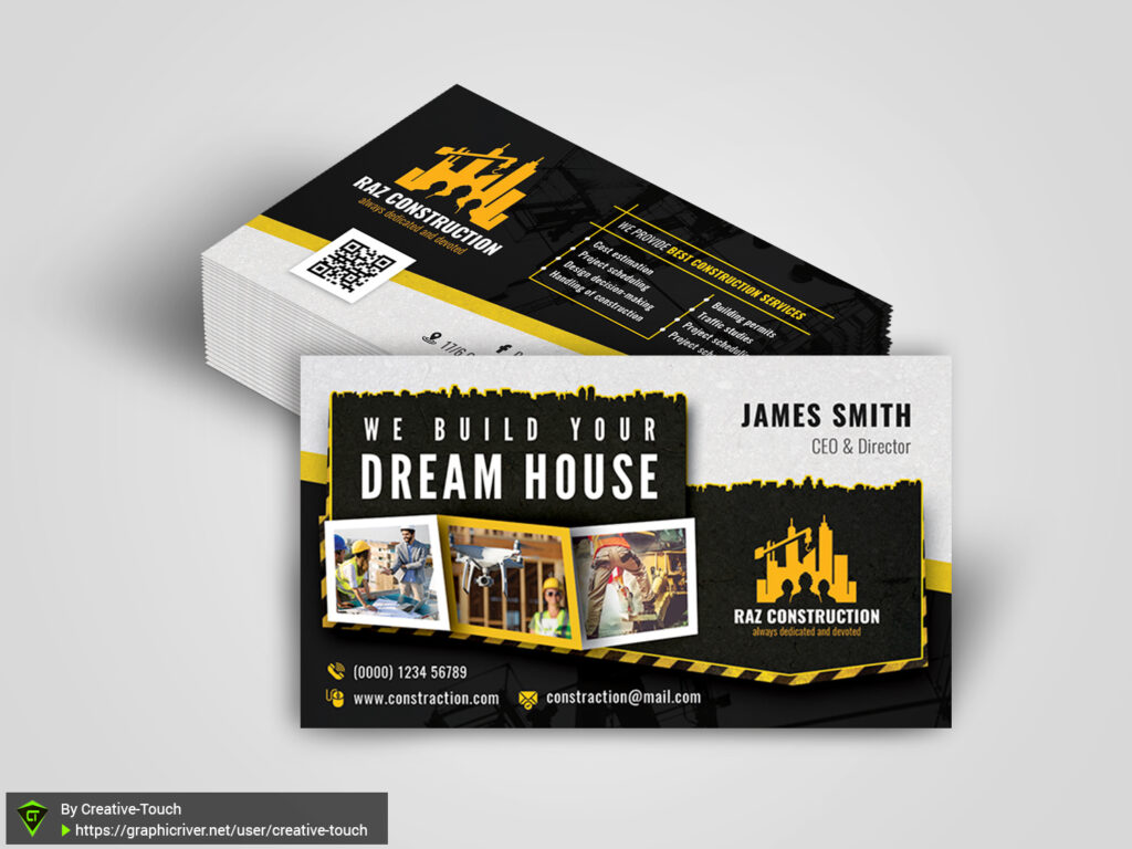 - Brand Recognition: Consistent use of brand colors on business cards enhances recognition and recall, allowing potential clients to easily identify and distinguish the construction company from its competitors.